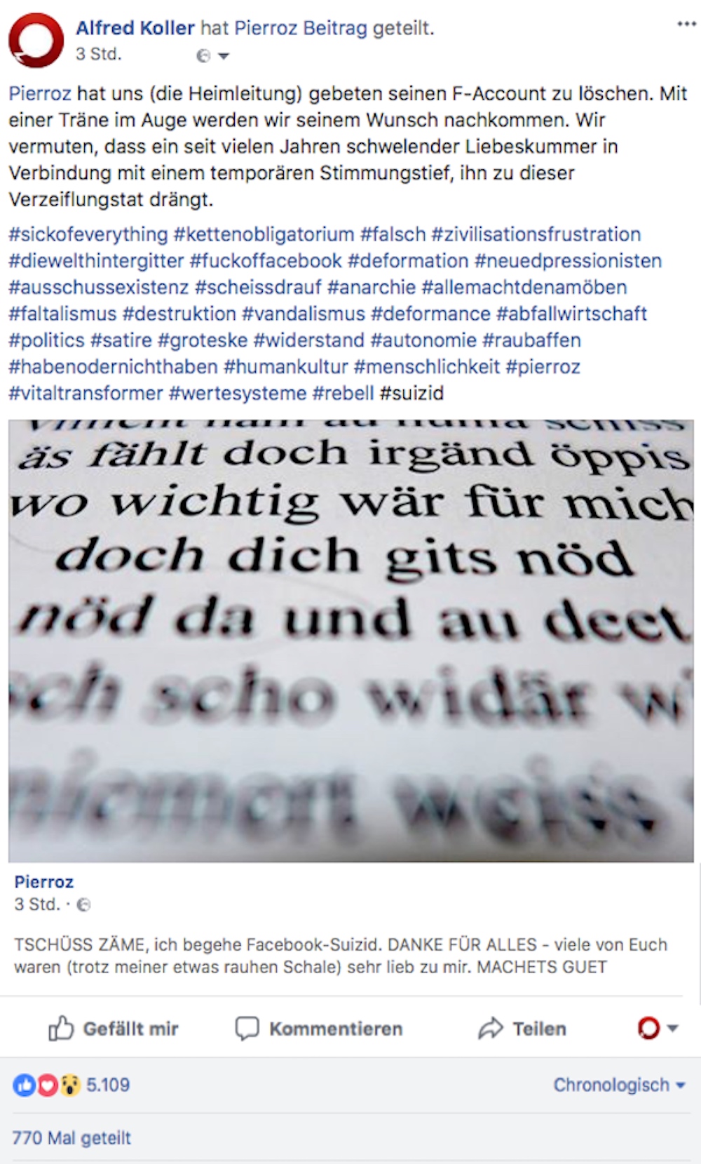 Freitod vom 20.März 2018 – freien Willens ist Pierroz aus dem digitalen Leben geschieden.